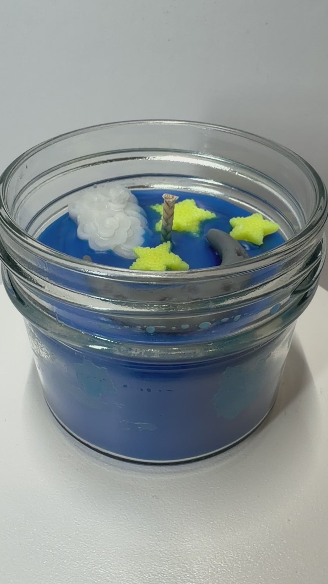 The deep blue wax base is accented with celestial-inspired embeds, evoking moonlight dancing across a midnight sky. Hand-poured in Michigan using a premium soy/paraffin blend, Moonbeam Dreams is perfect for winding down, setting a peaceful mood, or adding a touch of cosmic charm to your space.